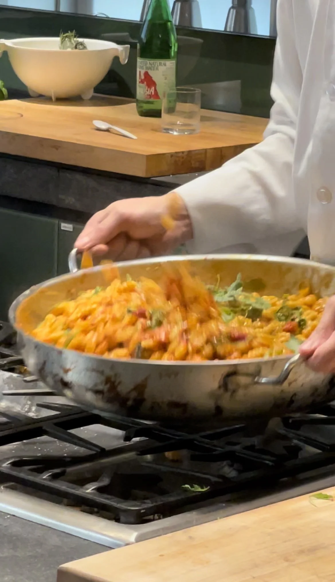 First up, at the start of the class they have a beautiful spread of appetizers to snack on and a sommelier making the rounds with wine pours the entire class so you are never hangry or have an empty glass! You sit in pairs at the tables while the chef goes through instructions and gives a very entertaining background on the class and what you will be cooking.