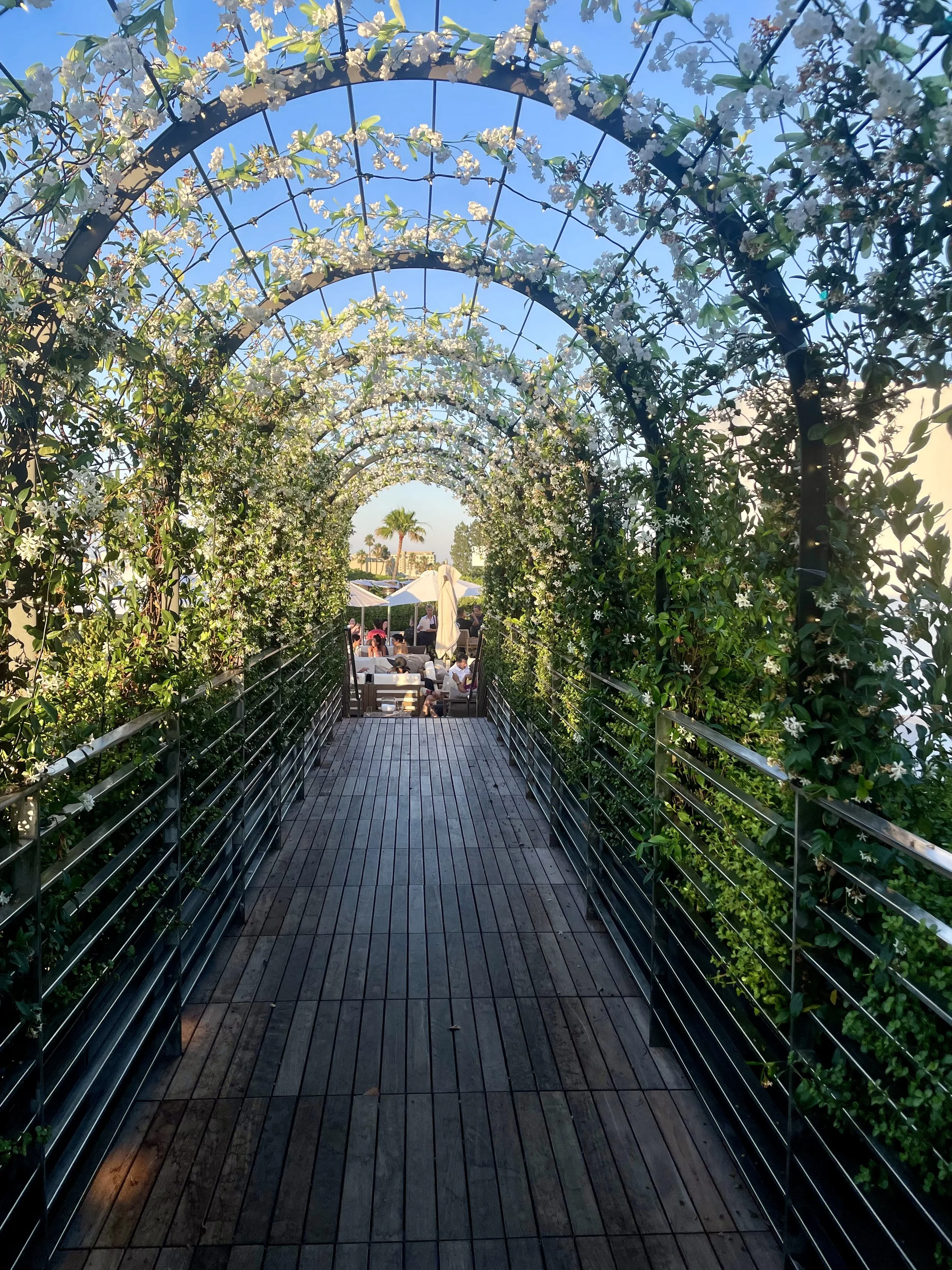 Stepping onto the rooftop, you immediately get the wow factor as there is an archway adorned with plants and flowers to walk through like your own runway before reaching the bar. I was absolutely in love with the bar, as it was made entirely of pink marble (adding it to my vision board scrapbook!). We ordered the ‘Sicilia’ cocktail, which is the Italian take on a margarita and it did not disappoint! Next time, I need to inquire how they get it to be such a gorgeous pink color and it has the perfect garnishes to match! I will say that the cocktail prices are higher than most places in LA (~$25), but the ‘Sicilia’ cocktail in particular is well worth it and pairs well with the Barbiecore theme of the summer.